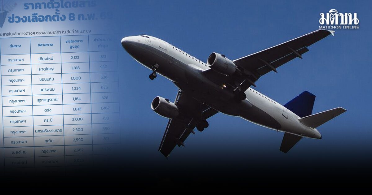 CAAT เผย ราคาตั๋วเครื่องบิน ยังไม่เกินเพดาน ช่วงเลือกตั้ง 8 ก.พ.69 ยังมีตั๋วต่ำกว่า 1,000 บาท
