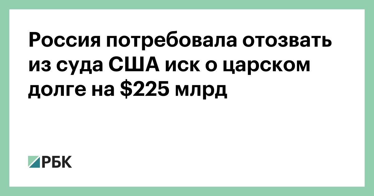Россия потребовала отозвать из суда США иск о царском долге на $225 млрд