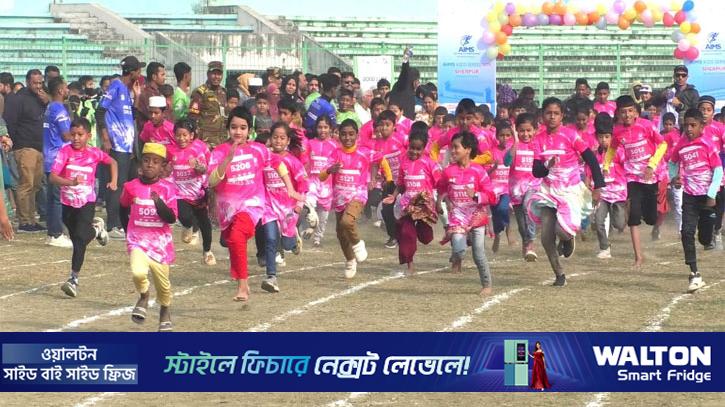 স্বাধীনতার ৫৪ বছর উপলক্ষে শেরপুরে উৎসবমুখর পরিবেশে অনুষ্ঠিত হয়ে গেল এইমস কিডস সিরিজের শিশুদের ম্যারাথন দৌড় প্রতিযোগিতা। শুক্রবার (১৬ জানুয়ারি) সকালে শেরপুর শহীদ মুক্তিযোদ্ধা স্মৃতি স্টেডিয়ামে এ প্রতিযোগিতার আয়োজন করা হয়।