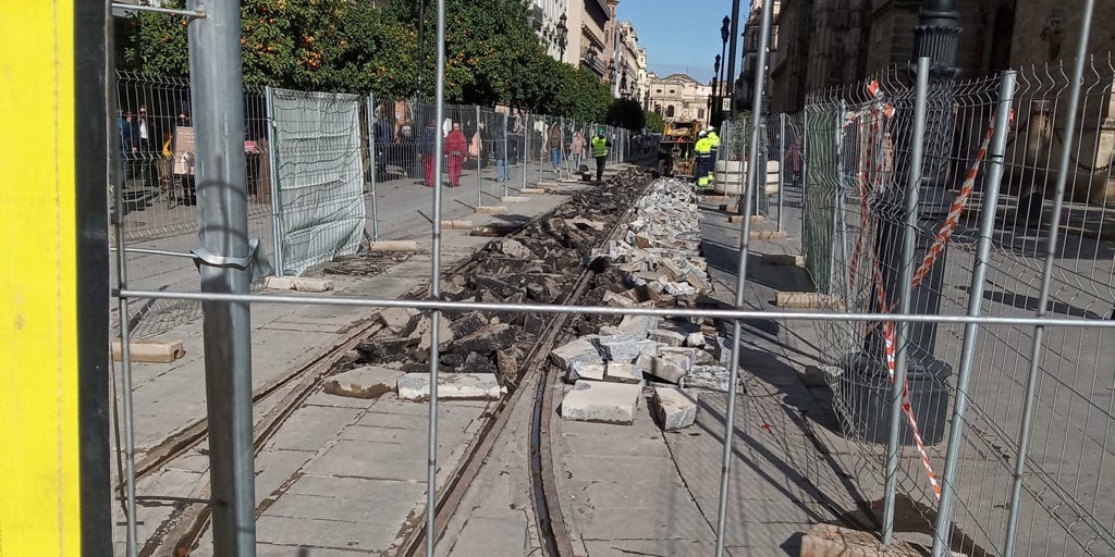 Las obras de mejora del pavimento de la Avenida de la Constitución, que se iniciaron este pasado miércoles, se han iniciado con el levantamiento del tramo del suelo que está situado justo al lado de la Puerta de San Miguel de la Catedral . Según anunció hace unos días el Ayuntamiento, se trata de una actuación que permitirá sustituir las actuales losetas por adoquines , con el objetivo de unificar el pavimento, mejorar la estética de esta vía principal y garantizar la seguridad de peatones y usuarios. El Consistorio también ha informado de que estos trabajos cuentan con un plazo de ejecución estimado de dos meses , por lo que estarán finalizados antes de la próxima Semana Santa , permitiendo el normal discurrir de las hermandades en una de las principales arterias del centro histórico. Durante la ejecución de las obras, la parada del Metrocentro de Plaza Nueva permanecerá anulada, siendo la última parada operativa la del Archivo de Indias. Esta primera intervención contempla la renovación del pavimento entrevías, en el tramo comprendido entre el Archivo de Indias y la Plaza Nueva, mediante la sustitución del actual pavimento de losas de granito por adoquines de granito gris enmarcados en grandes cuadros formalizados con doble encintado de granito rosa Monforte , respetando la estética del entorno monumental y de forma similar al entorno de la plaza Virgen de los Reyes donde se ha constatado el buen comportamiento y resistencia frente al paso de vehículos. Por otro lado, se mantendrá el pavimento existente adosado a las fachadas a modo de acerado, pavimentada con piezas de granito gris Quintana de gran formato y seguirá manteniendo, en uno de sus márgenes, la alineación de arbolado existente.