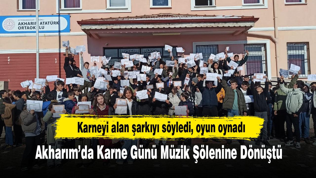Sandıklı'nın Akharım beldesinde bulunan Akharım Atatürk Ortaokulu’nda karne günü bu yıl müzik, kültür ve coşkunun bir arada yaşandığı etkinlikle kutlandı.