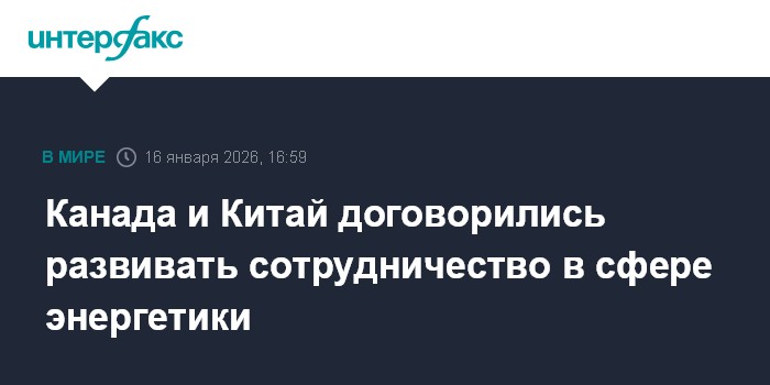 Канада и Китай договорились укреплять сотрудничество в области альтернативных и традиционных источников энергии, говорится в совместном заявлении, которое приводит пресс-служба канадского премьера Марка Карни."Стороны согласились содействовать обменам и сотрудничеству в области возобновляемой энергии и укреплять сотрудничество в сфере традиционных энергоносителей, таких как нефть и газ", - отмечается в документе.