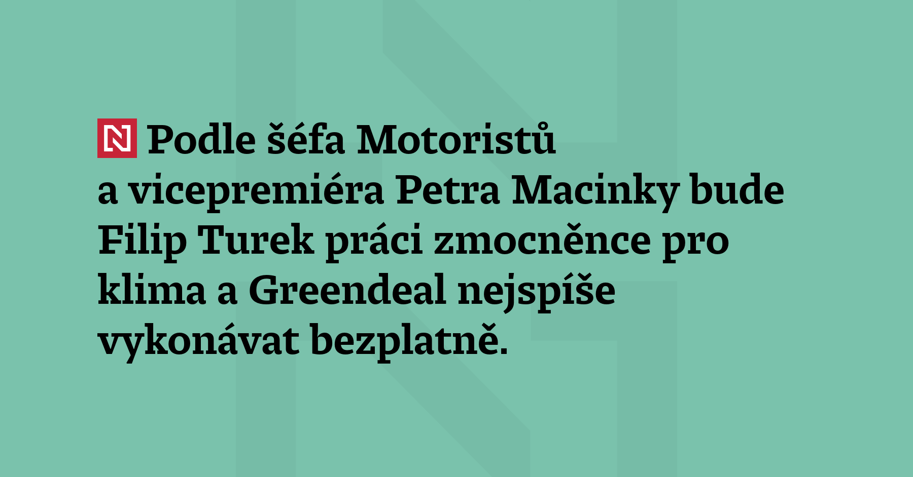 Podle šéfa Motoristů a vicepremiéra Petra Macinky bude Filip Turek práci zmocněnce pro klima a Greendeal nejspíše vykonávat bezplatně. „Určitě nepůjde o pracovní poměr a možná nebude nutná ani dohoda,“ řekl dnes Radiožurnálu.
