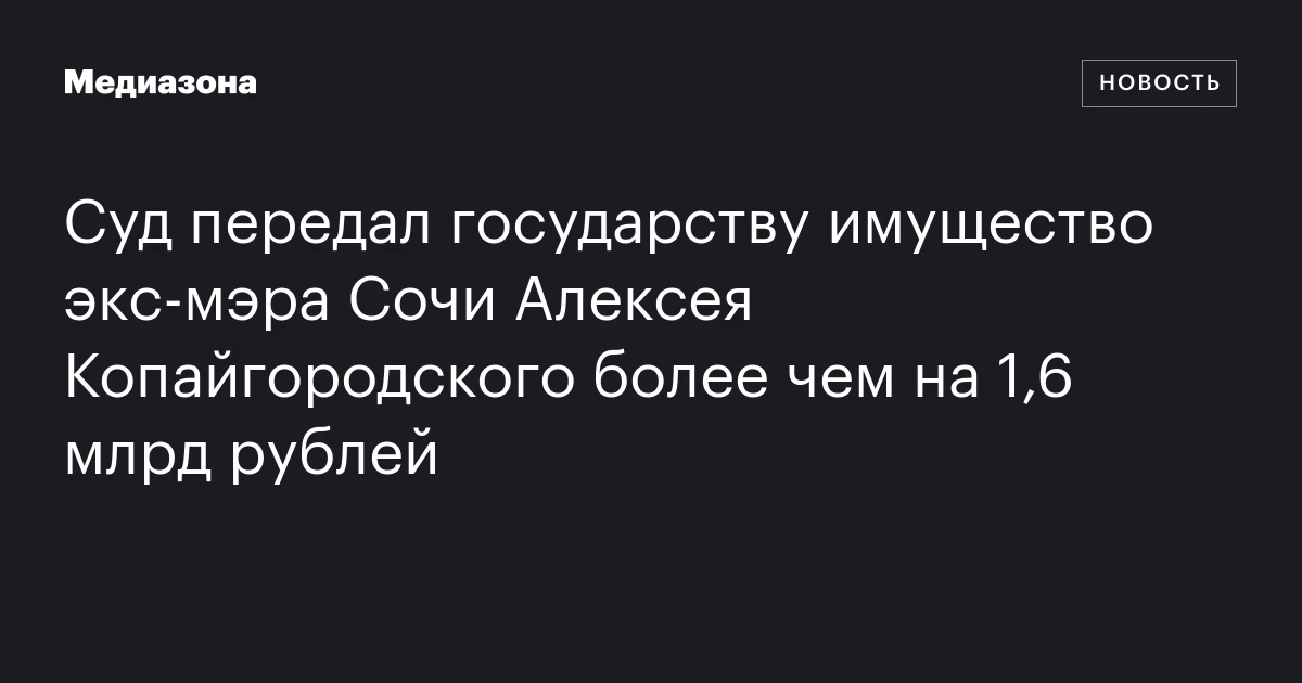 Суд передал государству имущество экс‑мэра Сочи Алексея Копайгородского более чем на 1,6 млрд рублей