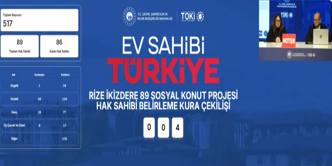 500 Bin sosyal konut kampanyası kapsamında Rize için noter huzurunda çekilen 2042 Adet Konut Projesinde Rize'nin İkizdere ilçesine ait hak sahibi isim listesi