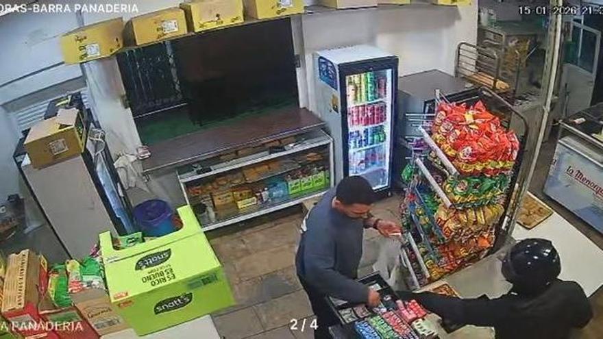 La Guardia Civil busca a los dos sujetos que atracaron a punto de pistola y en menos de un minuto una tienda de Cabo de Palos, en Cartagena, indican fuentes policiales.