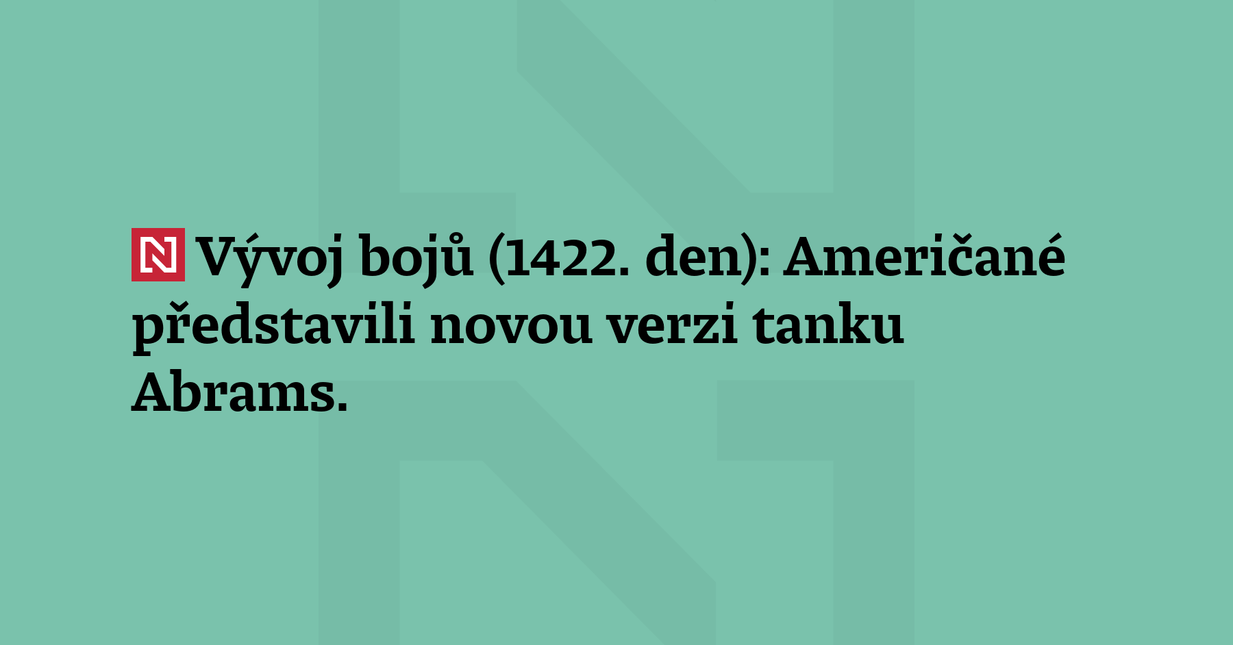 Vývoj bojů (1422. den): Američané představili novou verzi tanku Abrams. Prošel...
