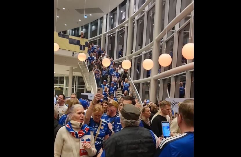 Íslenskir stuðningsmenn handboltalandsliðsins í Kristianstad í Noregi eru fjölmennir og líflegir. Íþróttafréttamaðurinn fyrrverandi Adolf Ingi Erlingsson fangaði stemninguna í skemmtilegu myndbandi en íslensku stuðningsmennirnir sungu þá sem ein rödd eftir sigurinn gegn Ítalíu.