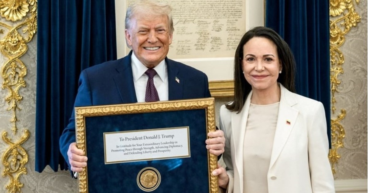 Μία ημέρα αφότου η Μαρία Κορίνα Ματσάδο έδωσε μέρος του βραβείου της στον Αμερικανό πρόεδρο Ντόναλντ Τραμπ.