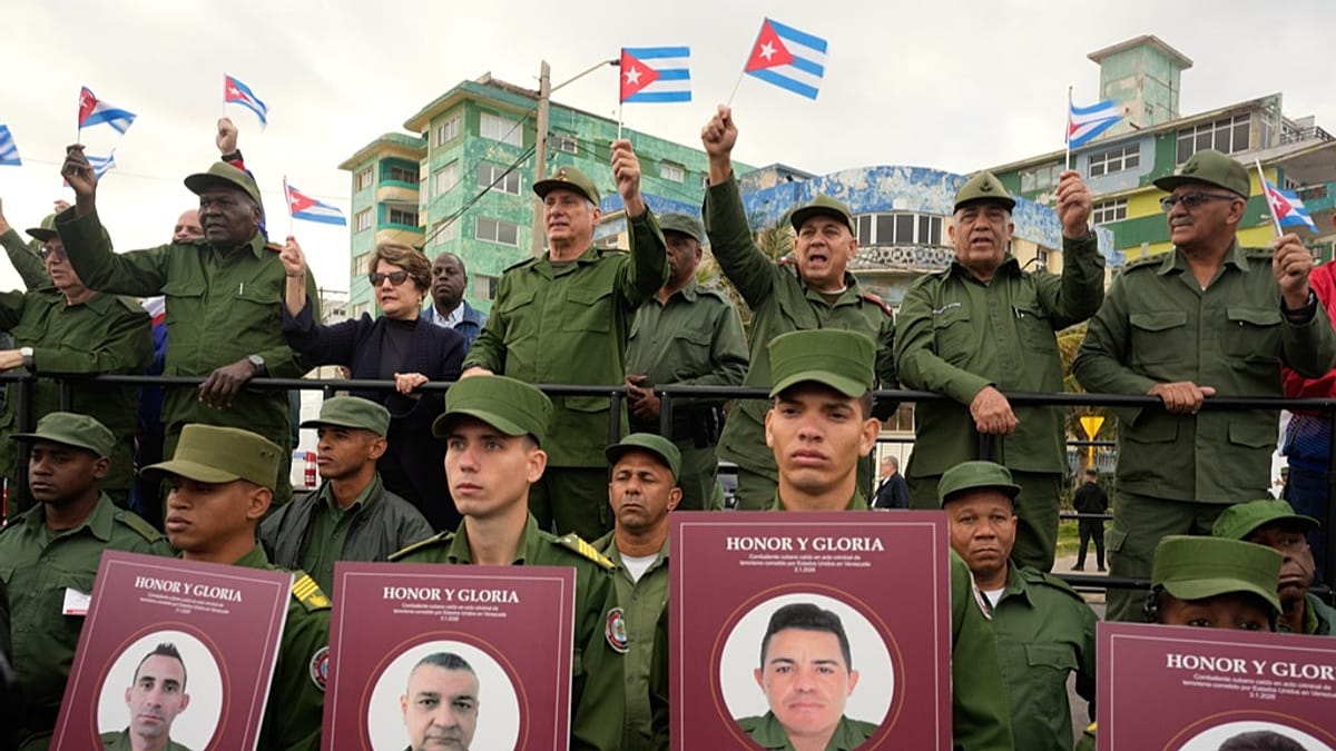 خرج عشرات الآلاف من الكوبيين، يوم الجمعة، في تظاهرة حاشدة أمام السفارة الأمريكية في هافانا، احتجاجًا على مقتل 32 ضابطًا كوبيًا في فنزويلا، وللمطالبة بالإفراج عن الرئيس الفنزويلي السابق نيكولاس مادورو.