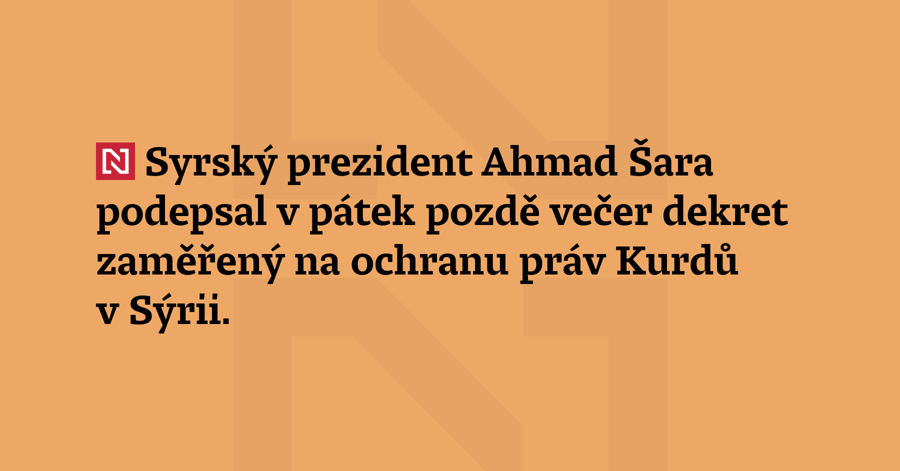 Syrský prezident Ahmad Šara podepsal v pátek pozdě večer dekret zaměřený na ochranu práv Kurdů v Sýrii. Dokument obsahuje pojistky proti etnické a jazykové diskriminaci a přichází v době obnovených střetů mezi syrskými vládními vojsky a kurdskými silami podporovanými USA. Prezident Šara ve videu na svém účtu na síti X oslovil přímo kurdské obyvatelstvo. Uvedl, že dekret, „chráněný písmem zákona“, zaručí […]