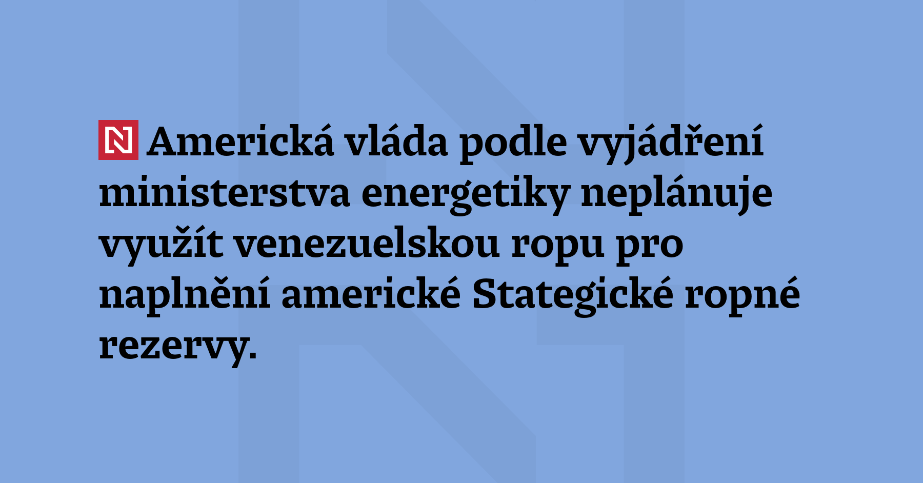 Americká vláda podle vyjádření ministerstva energetiky neplánuje využít venezuelskou ropu...