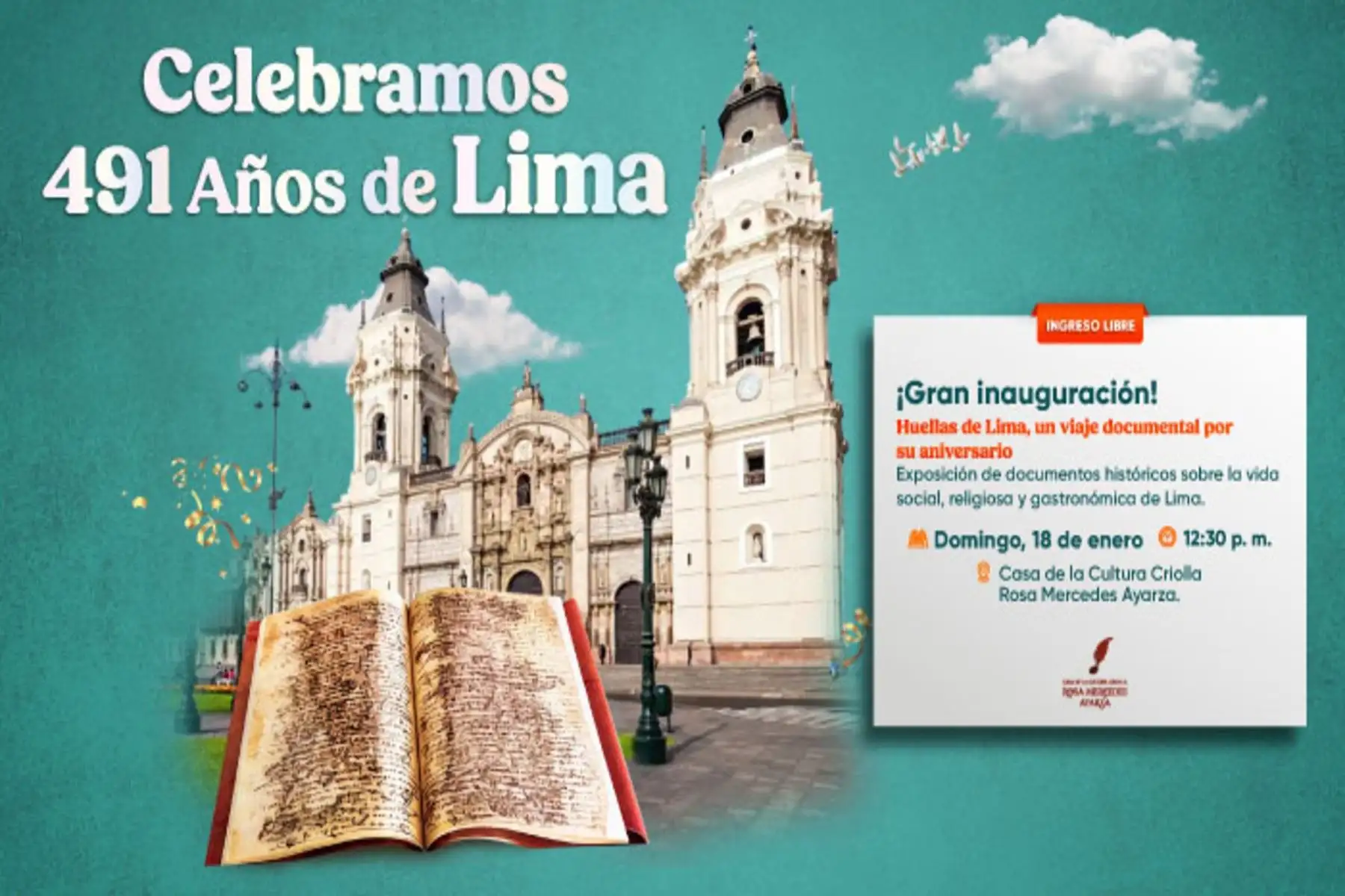 En el marco de las celebraciones del 491° aniversario de la fundación de Lima, el Archivo General de la Nación (AGN) presentará la exposición "Huellas de Lima: un viaje documental por su aniversario", donde se exhibirán documentos históricos sobre la vida social, religiosa y gastronómica de Lima.