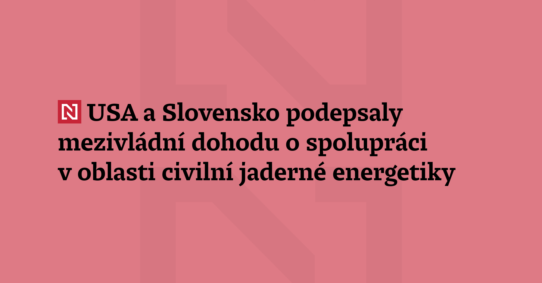 Slovensko podepsalo se Spojenými státy mezivládní dohodu o spolupráci v oblasti civilní jaderné energetiky. Součástí dohody je výstavba jaderného bloku o výkonu 1200 megawattů podle amerického návrhu v jaderné elektrárně Jaslovské Bohunice. Slavnostní podpis následoval po pracovní schůzce slovenského premiéra Roberta Fica s americkým ministrem energetiky Chrisem Wrightem. (Reuters)