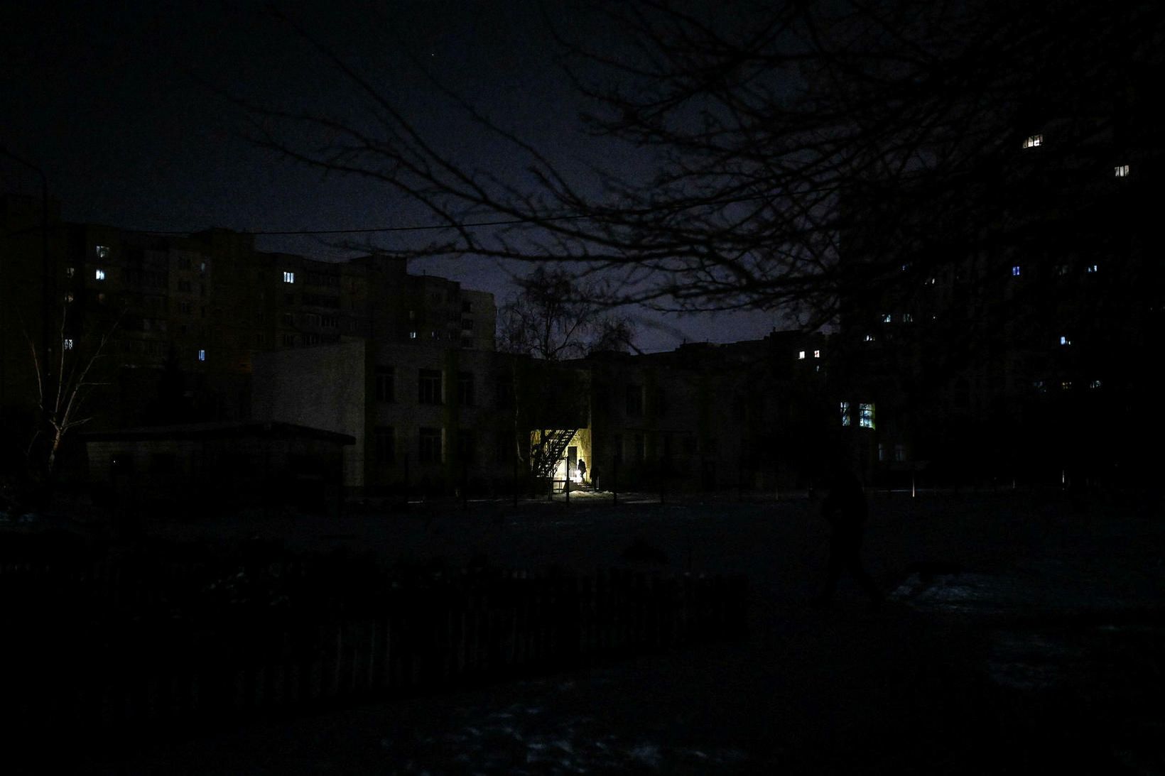 Þegar Óskar Hallgrímsson, ljósmyndari og blaðamaður í Úkraínu, horfði út um glugga íbúðar sinnar í Kænugarði í gærkvöldi sá hann ljós skína í einni íbúðablokk. Annars ríkti algjört myrkur því viðvarandi rafmagnsleysi hefur verið í borginni undanfarið.