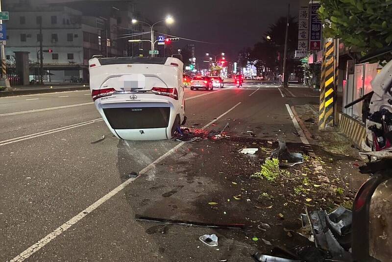 高雄深夜自撞翻車!疑操作導航惹禍