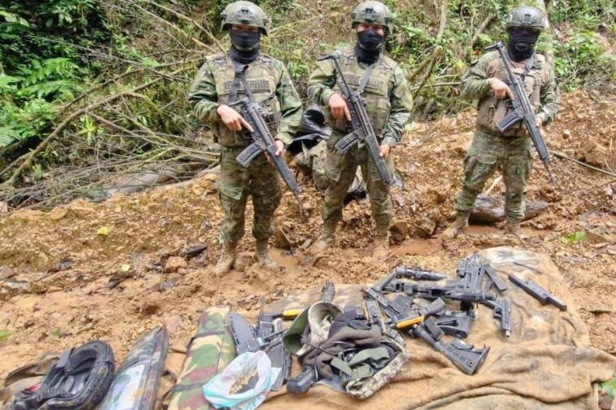 Ejército ecuatoriano localiza armas, municiones y explosivos en paso ilegal de la frontera sur