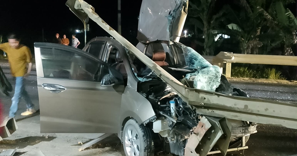 (NLĐO) - Đang lưu thông trên đường Hồ Chí Minh qua Thanh Hóa, chiếc ô tô 4 chỗ bất ngờ tông vào lan can đường khiến chiếc xe vỡ nát phần đầu.