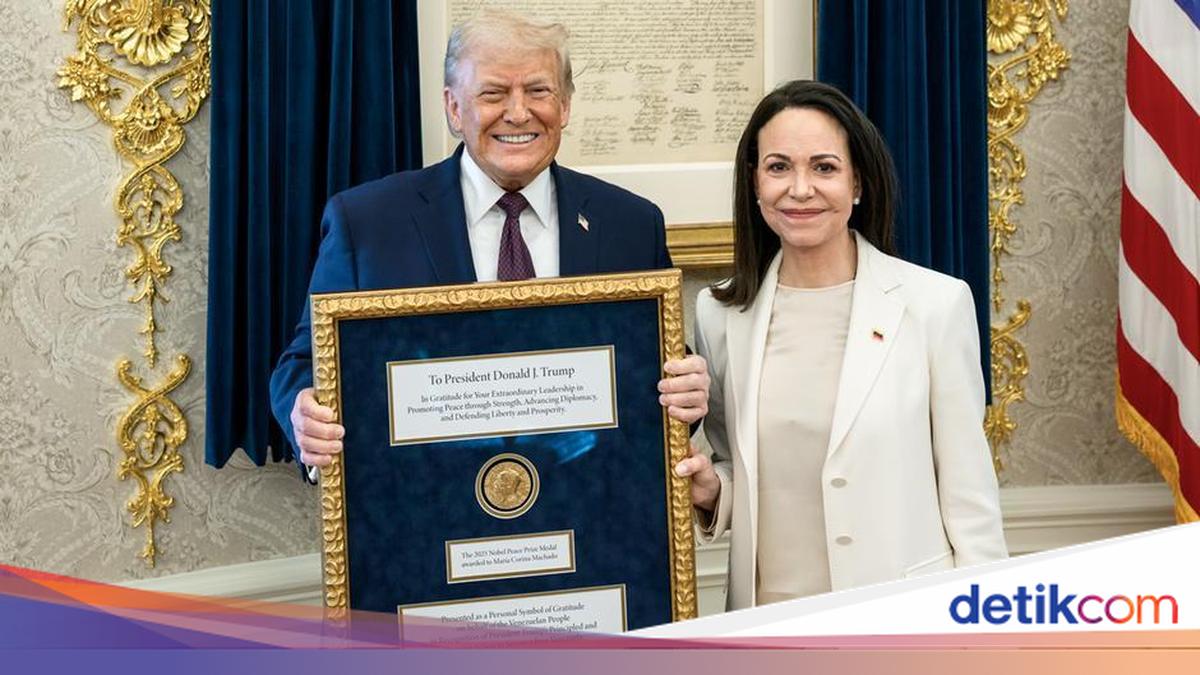 Pemimpin oposisi Venezuela, Maria Corina Machado, menyerahkan Hadiah Nobel Perdamaian 2025 kepada Donald Trump.