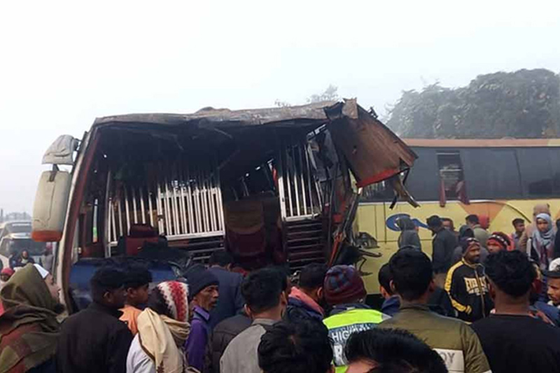 সিলেটের ওসমানীনগরে তিনটি যাত্রীবাহী বাসের মুখোমুখি সংঘর্ষে দুজন নিহত হয়েছেন। এ ঘটনায় অন্তত ১০ জন আহত হয়েছেন। শনিবার (১৭ জানুয়ারি) সকাল ৭টার দিকে ঢাকা–সিলেট মহাসড়কের ওসমানীনগর উপজেলার সোয়ারগাঁও এলাকায় এই দুর্ঘটনা ঘটে। পুলিশ জানায়, সিলেট থেকে ঢাকাগামী এনা পরিবহন ও ইউনিক পরিবহনের একটি বাসের সঙ্গে গাইবান্ধা থেকে সিলেটগামী শ্যামলী পরিবহনের একটি বাসের মুখোমুখি সংঘর্ষ হয়।সংঘর্ষে […] The post সিলেটে তিন বাসের সংঘর্ষে নিহত ২, আহত ১০ appeared first on চ্যানেল আই অনলাইন .