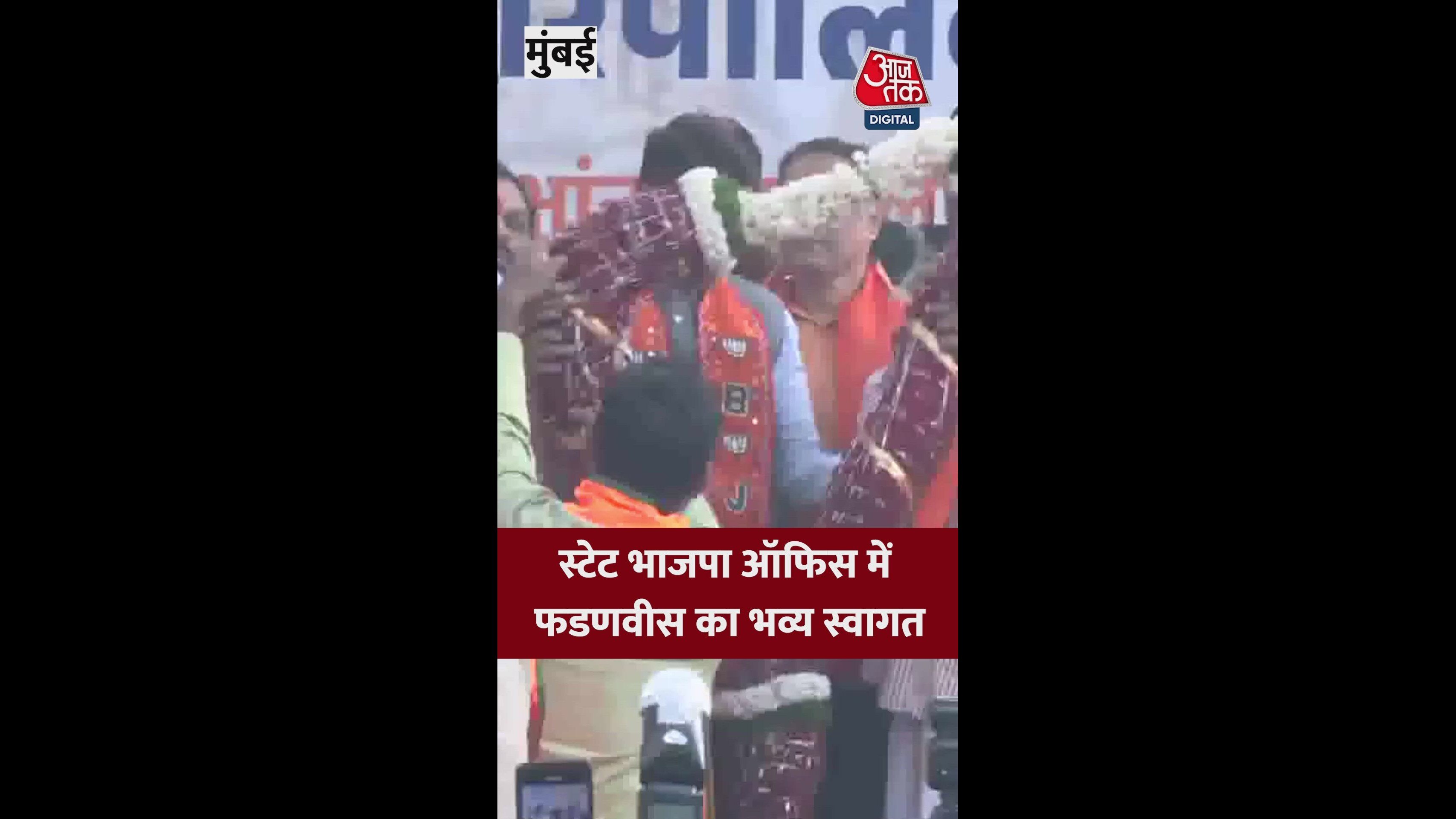 मुंबई BJP कार्यालय में सीएम फडणवीस का भव्य स्वागत