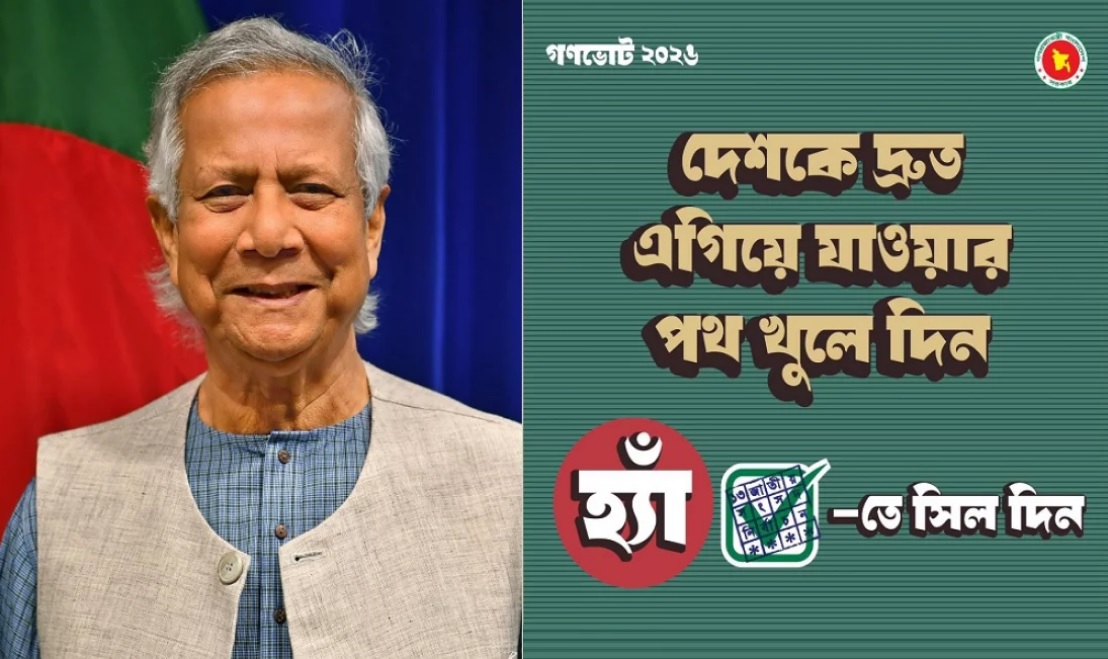 প্রধান উপদেষ্টা ড. মুহাম্মদ ইউনূস ১২ ফেব্রুয়ারি আসন্ন গণভোটের জন্য ‘হ্যাঁ’ ভোট চেয়ে সোশ্যাল মিডিয়ায় ফটোকার্ড শেয়ার করেছেন। আজ শনিবার বেলা ১১টার দিকে ফেসবুক পেজ এবং এক্স হ্যান্ডল থেকে গণভোটের প্রচারণায় ফটোকার্ড শেয়ার করেন তিনি। ফটোকার্ডে লেখা, ‘গণভোট ২০২৬- দেশকে দ্রুত এগিয়ে যাওয়ার পথ খুলে দিন ‘হ্যাঁ’তে সিল দিন।’ প্রধান উপদেষ্টার প্রেস উইং থেকে বলা […] The post গণভোটের ফটোকার্ড শেয়ার করলেন প্রধান উপদেষ্টা appeared first on চ্যানেল আই অনলাইন .