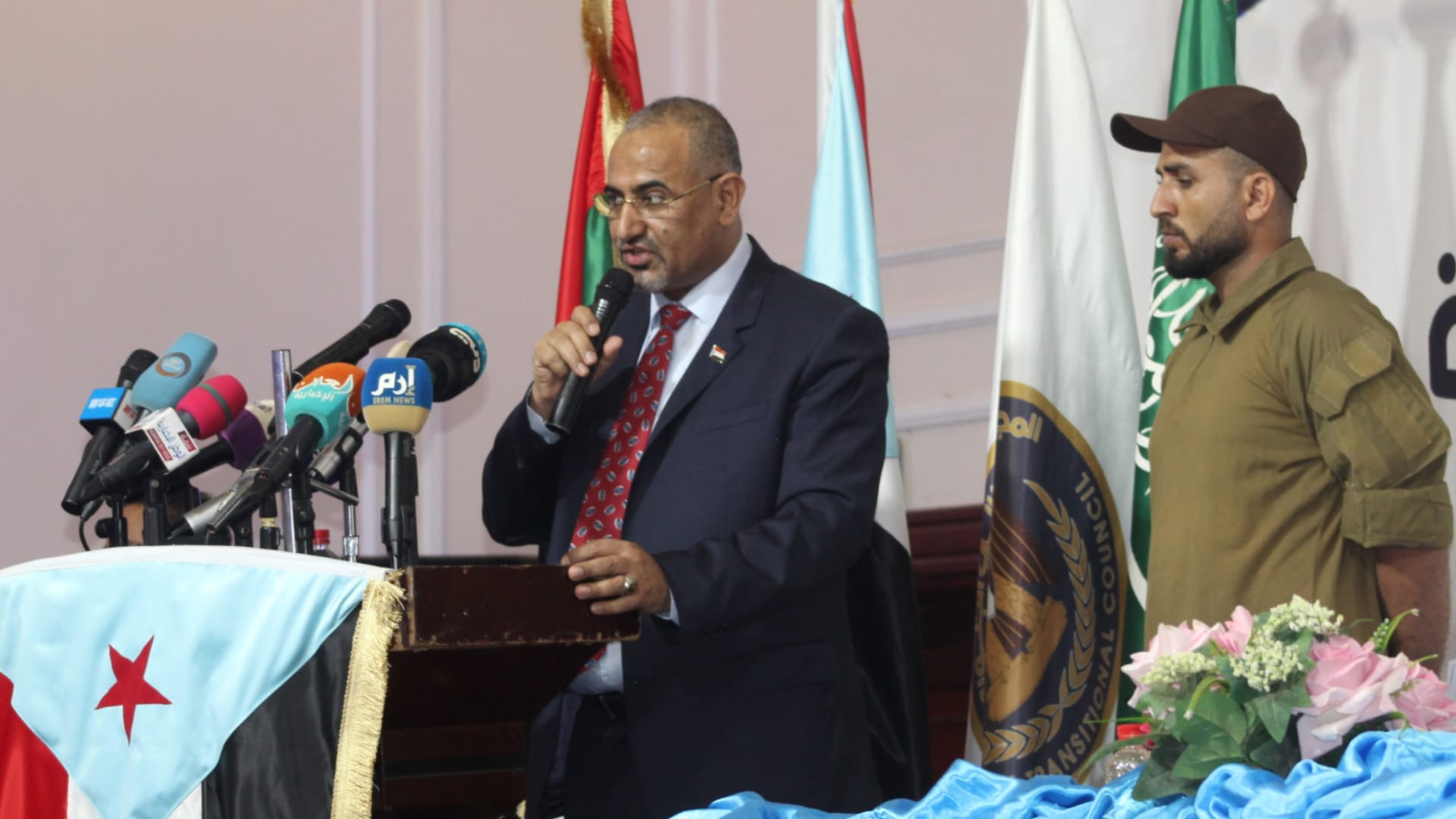 علق عيدروس الزبيدي رئيس المجلس الانتقالي الجنوبي في اليمن، مساء الجمعة، على المظاهرات التي شهدتها المحافظات الجنوبية، في أول بيان له بعد إعلان "التحالف العربي لدعم الشرعية" في اليمن بقيادة السعودية "هروبه" من عدن.