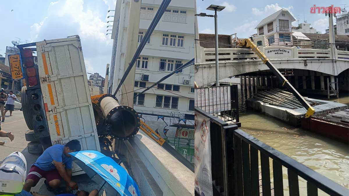หวิดตกคลอง รถ6ล้อบรรทุกเครนคว่ำ พบผู้บาดเจ็บ2ราย รีบส่งรพ. เผยน้ำมันรั่วไหลบนพื้นถนน เร่งเคลียร์การจราจร ตรวจสอบสาเหตุ เมื่อเวลา 13.52 น. วันที่ 17 ม.ค.69 เกิดเหตุรถบรรทุกเครนพลิกคว่ำ บริเวณสะพานนรรัตน์สถาน ถนนจักรพงษ์ แขวงตลาดยอด เขตพระนคร กทม. เจ้าหน้าที่สถานีดับเพลิงและกู้ภัยภูเขาทอง จึงนำกำลังไปตรวจสอบที่เกิดเหตุ ที่เกิดเหตุอยู่บนสะพานพบรถบรรทุกพ่วง 6 ล้อ ยี่ห้อฮีโน่ เมก้า ของห้างหุ้นส่วนจำกัด พี.เอส. สแปร์พาร์ท ทะเบียนป้ายเหลือง 71-7781 หมวดจังหวัดปทุมธานี สภาพล้มคว่ำตะแคงอยู่บนฟุตปาธขอบสะพาน ด้านหลังใช้บรรทุกรถเครนเล็ก เกือบตกลงไปในคลอง มีน้ำมันรั่วไหลบนพื้นถนน เจ้าหน้าที่สำนักงานเขตได้นำทรายมากลบ ที่เกิดเหตุพบมีผู้ได้รับบาดเจ็บ รวม 2 ราย 1 ราย อายุประมาณ 28 ปี มีอาการเจ็บหน้าอก อาสาสมัครนำส่งโรงพยาบาลกลาง นอกจากนี้ยังมีผู้ได้รับบาดเจ็บอีก จำนวน 1 ราย เป็นเพศชาย อายุประมาณ 20 […]
