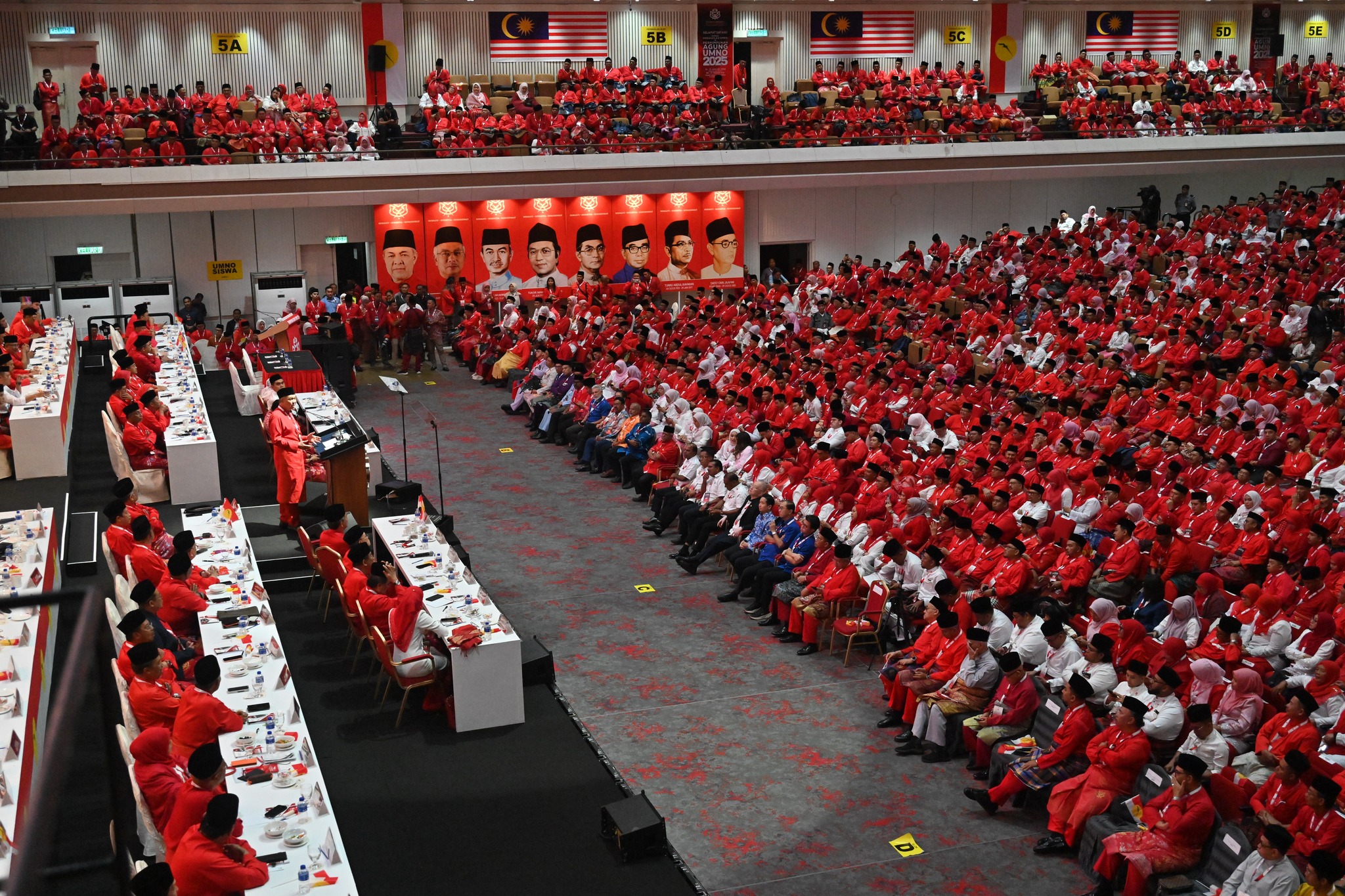 Rumah ini, Tiangnya setia, Atapnya maruah, Dindingnya lelah, Serambinya ikrar, halamannya tanggungjawab. Ini Rumah UMNO, rumah darah dan sumpah, rumah keramat para ayah, rumah bakti para ibu, rumah juang para anak-anak cucu, yang membela bangsa ketika bangsa tiada arah. Di sini pernah berdiri anak kampung berjiwa tabah, mengangkat martabat Melayu tanpa menagih upah. Dulu, kita berjalan satu saf, satu langkah, [...]