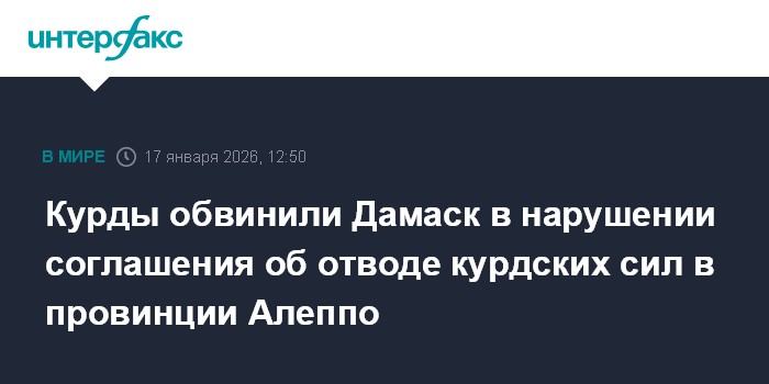 Возглавляемые курдами Сирийские демократические силы (СДС) заявили, что власти Сирии нарушили договоренности об уходе отрядов СДС с территорий провинции Алеппо вблизи реки Евфрат, сообщает Al Jazeera."В заявлении СДС говорится, что правительственные войска вошли в эти районы до завершения процесса отвода курдских отрядов, и это нарушение сделки", - информирует телеканал.