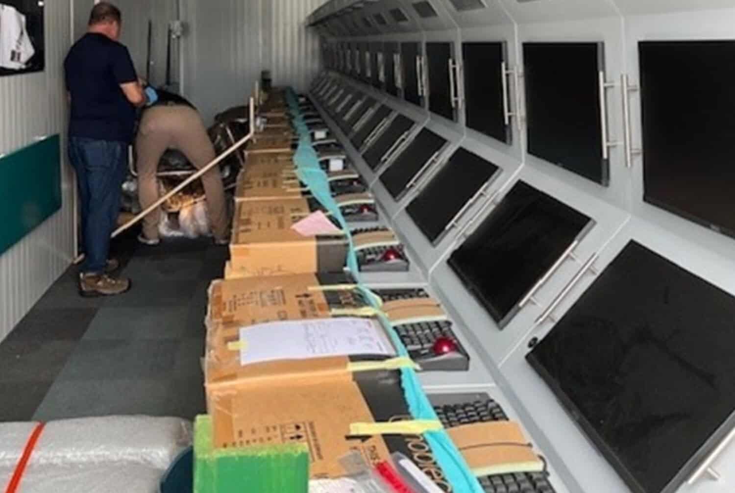 The US formally seized two shipping containers housing training workstations made by a South African flight academy