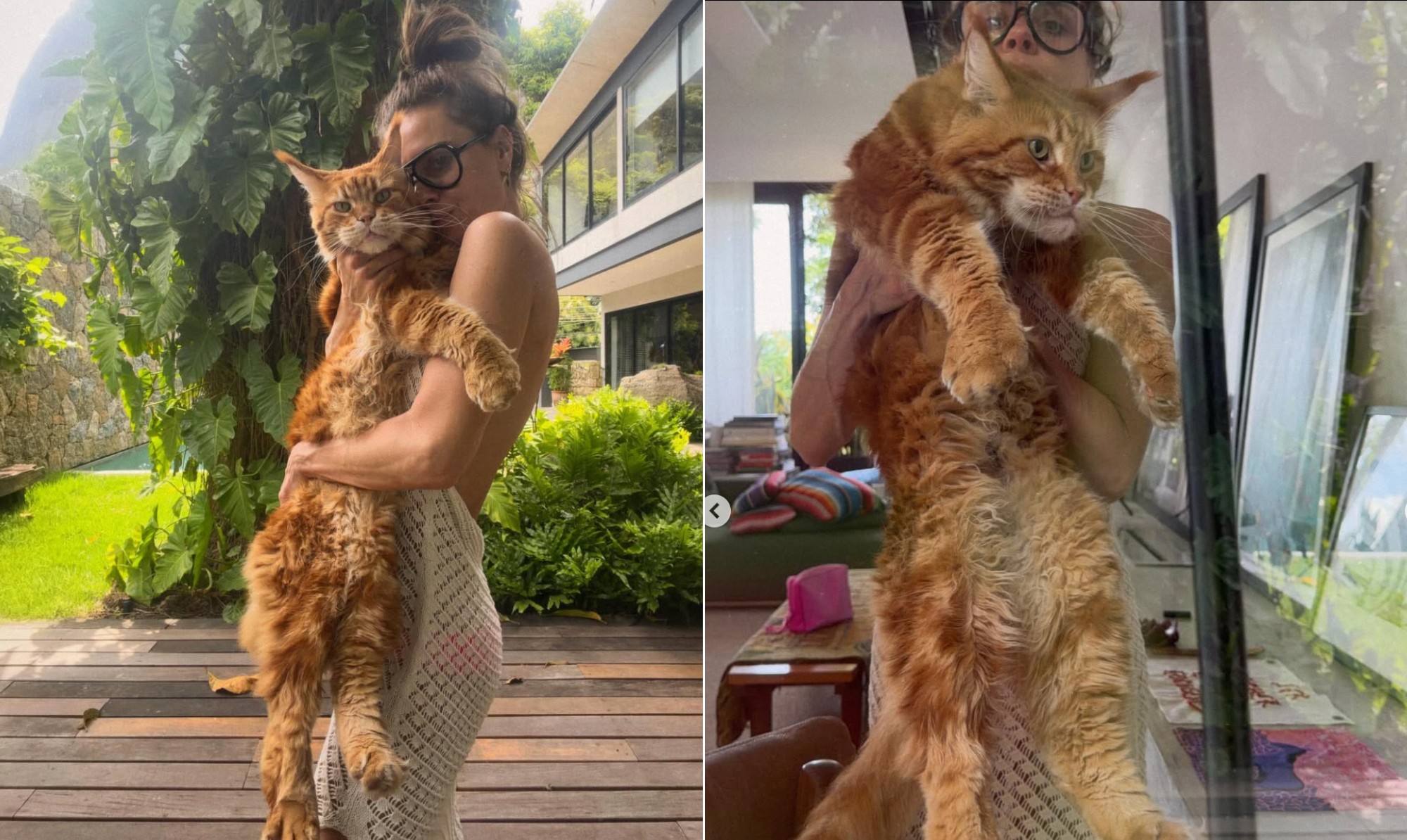 Carolina Dieckmmann publicou uma sequência de fotos com seus gato de estimação, Chili, em seu perfil do Instagram, na última sexta-feira. já agarrou seu pet hoje??? essas são as ultimas 24horas no meu celular. tem muita correria, mas tem pausa. e ainda sobra gratidão, esforço e afeto...", escreveu ela na legenda da publicação. O felino é da raça Maine Coon, originária do nordeste dos Estados Unidos. É considerada a raça de pelo mais antiga, além de ser a maior de todas as raças de gato do mundo, podendo medir de 100cm a 120cm. Nos comentários, internautas chamaram a atenção para o tamanho do animal. "Gente! Que grandão lindo!❤️", comentou a atriz Karine Teles. "ele quase do seu tamanho juro ", disse uma internauta. "o chili ta enoooorme!!! ", "Foi o primeiro que vi dessa raça, em uma foto sua mais antiga. Hoje tenho o meu grandão laranja também. Eles são demais❤️". Initial plugin text
