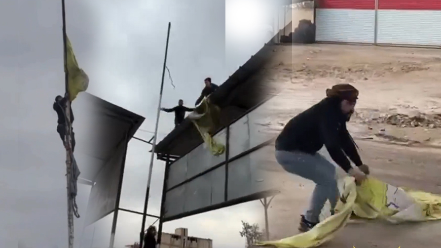Fırat Nehri'nin batısında yer alan ve bu sabah Suriye ordusunun kontrolüne geçen Deyr Hafir ve Meskene beldelerindeki terör örgütü YPG/SDG'nin sembolleri, halk tarafından sökülerek yırtıldı.
