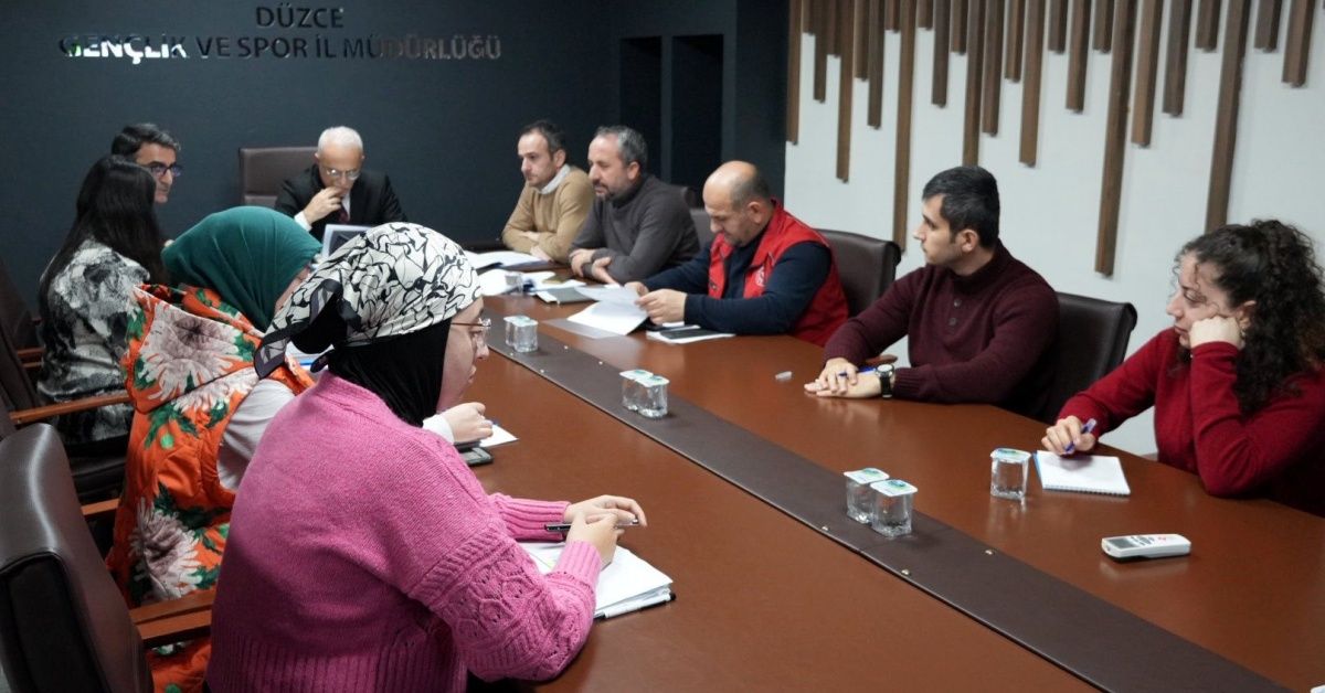 Düzce Gençlik ve Spor İl Müdürü Zekeriya Arslantürk'ün katılımıyla, Eğitim, Araştırma ve Koordinasyon Genel Müdürlüğü tarafından hazırlanan Düzce il sıralamasına ilişkin değerlendirme toplantısı gerçekleştirildi.
