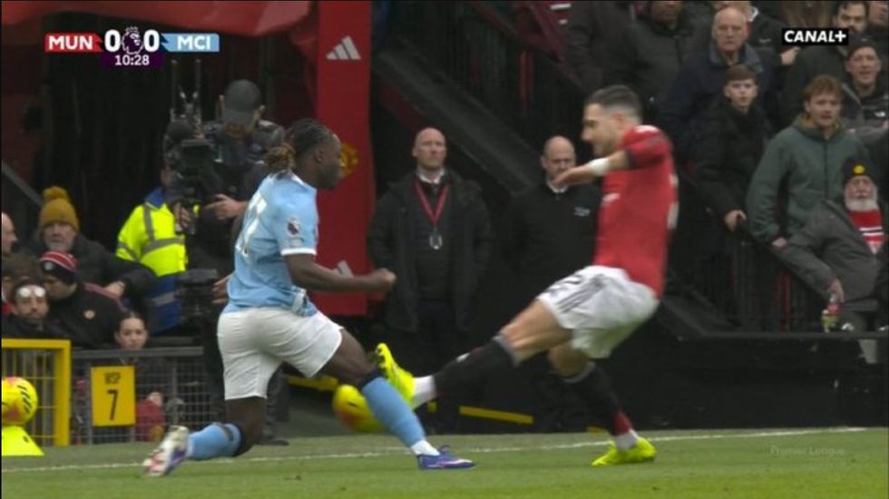 Mbrojtësi portugez, Diogo Dalot ka bërë një ndërhyrje shumë të ashpër ndaj kundërshtarit të tij, Jeremy Doku, por ka shpëtuar pa u ndëshkuar me karton të kuq. Derbi i qytetit mes Manchester United dhe Manchester City në Old Trafford ka nisur me një ritëm ta lartë, por edhe më lojë të ashpër. Një ndërhyrje shumë e ashpër ka ndodhur pikërisht në minutën e 11-të të ndeshjes, me Dalot akterin kryesor. Ishte sulmuesi anësor i Cityt, Doku, i cili në tentim për t’i ikur në sulm, Dalot bëri një ndërhyrje ‘horror’ duke e goditur me thumba në gju. That’s a red card for Caicedo if he did what Dalot just did to Doku ? #MUNMCI pic.twitter.com/zTlbki1OVc — ???????? (@Oyinlola_cfc) January 17, 2026 Megjithatë, mbrojtësi portugez shpëtoi mrekullisht nga kjo ndërhyrje, pasi gjyqtari Anthony Taylor vendosi t’i jap vetëm karton të verdhë. I çuditshëm është edhe fakti se as dhoma e VAR-it nuk ndërhyri për ta ftuar gjyqtarin kryesor dhe ndeshja vazhdoi si mos të ndodh asgjë. /Telegrafi/