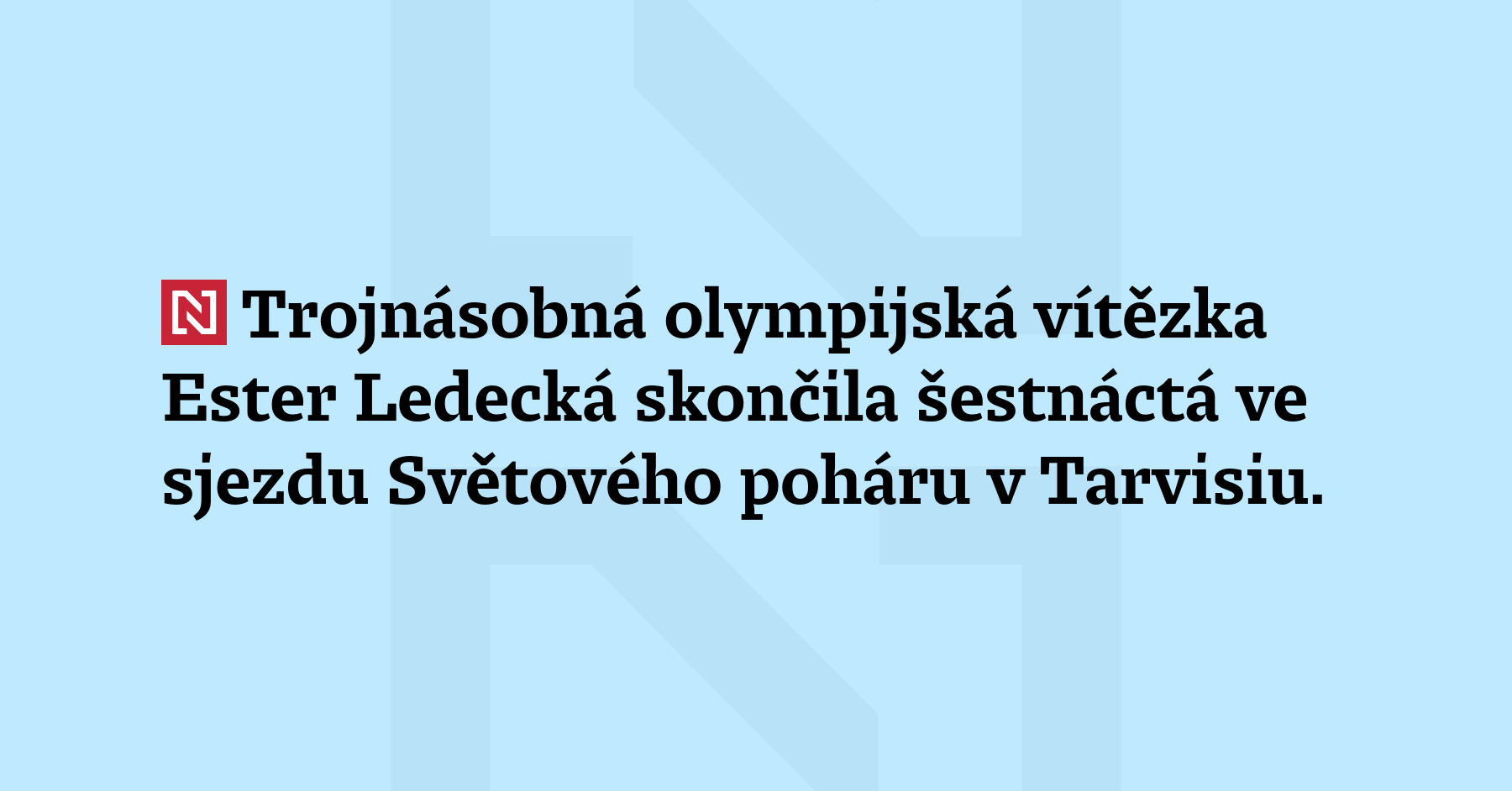 Trojnásobná olympijská vítězka Ester Ledecká skončila šestnáctá ve sjezdu Světového poháru v Tarvisiu. Ledecká ztratila v italském středisku na domácí vítězku Nicol Delagovou 1,68 sekundy. (České noviny)