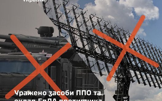 На території тимчасово окупованого українського Криму підрозділами Сил оборони України уражено об’єкти протиповітряної оборони ворога - радіолокаційну станцію "Небо-У" (район Євпаторії) та зенітний ракетно-гарматний комплекс "Панцир-С1" (в районі Хуторка).