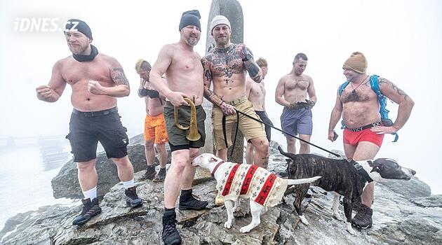 Otužilci zdolali Ještěd v kiltu či trenýrkách, svršky sundala i hvězda MMA