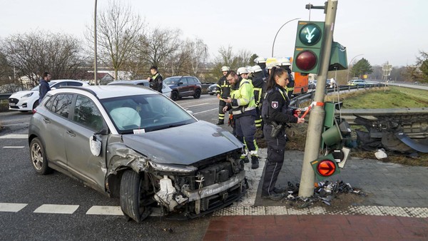 Der Fahrer des wartenden Autos wird bei dem Unfall leicht verletzt. Die Fahndung der Polizei verläuft zunächst erfolglos.