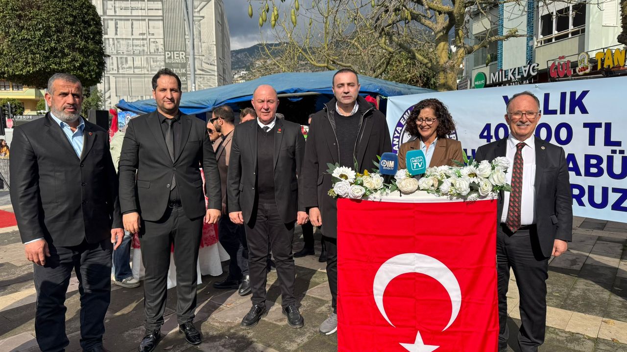 Alanya’da emlakçılar, yıllık 40 bin TL’lik ruhsat harcının kaldırılması için Hacet Meydanı’nda bir araya gelerek protesto düzenledi, imza kampanyası başlattı