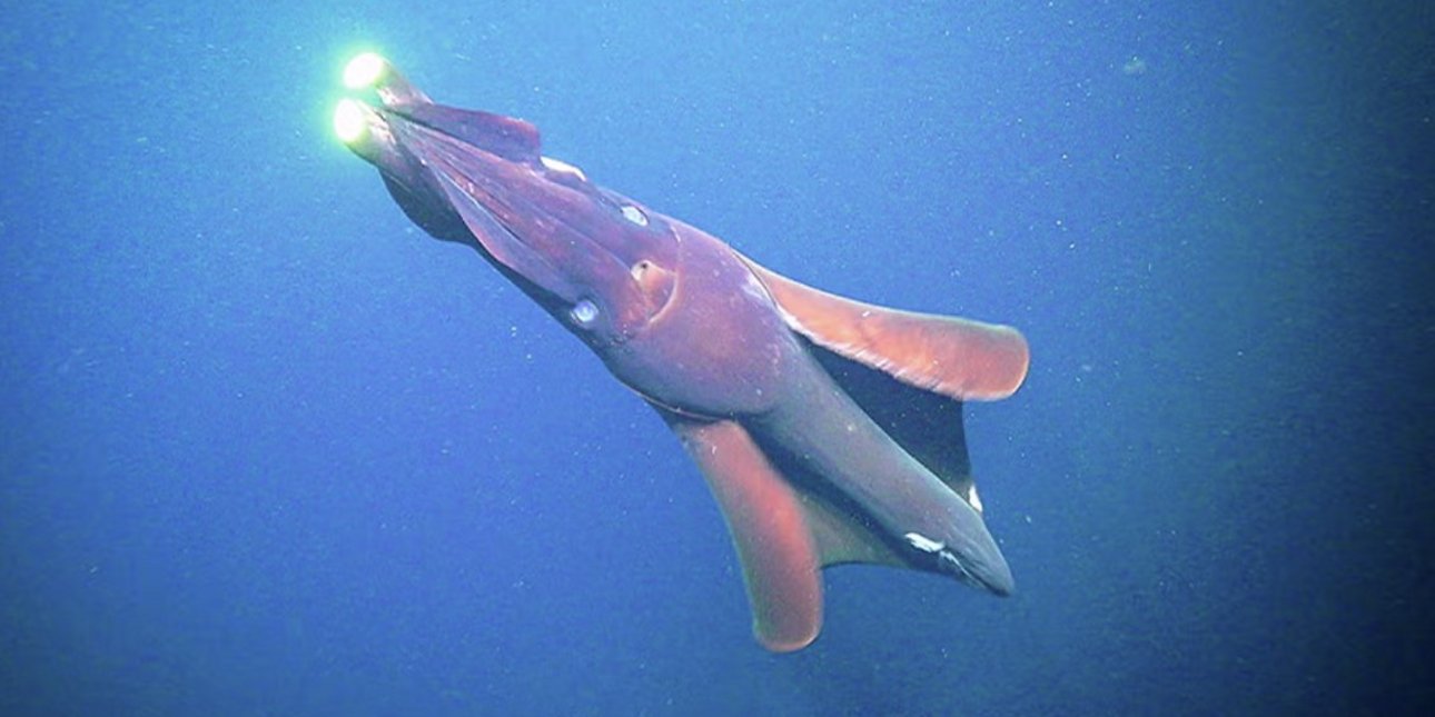 Ένα καλαμάρι μήκους άνω των δύο μέτρων και βάρους περίπου 60 κιλών, το είδος Taningia danae, το οποίο κατέχει ένα σχεδόν αδιανόητο ρεκόρ: διαθέτει τα μεγαλύτερα όργανα παραγωγής φωτός που έχουν καταγραφεί ποτέ σε ζώο. Ανάμεσα στα εκθέματα του National Museum of Natural History στην Ουάσιγκτον, υπάρχει ένα πλάσμα που μοιάζει περισσότερο με εφιάλτη από τα βάθη του ωκεανού παρά με ζώο. Πρόκειται για ένα καλαμάρι μήκους άνω των δύο μέτρων και βάρους περίπου 60 κιλών, το είδος Taningia danae, το οποίο κατέχει ένα σχεδόν αδιανόητο ρεκόρ: διαθέτει τα μεγαλύτερα όργανα παραγωγής φωτός που έχουν καταγραφεί ποτέ σε ζώο. Σε αντίθεση με τα περισσότερα καλαμάρια βαθέων υδάτων, το Taningia danae δεν έχει τα δύο μακριά πλοκάμια σύλληψης τροφής. Αντί γι’ αυτά, στις άκρες δύο από τα οκτώ του βραχίονες φέρει δύο τεράστιους, κιτρινωπούς φωτοφόρους – όργανα βιοφωταύγειας στο μέγεθος λεμονιού. Αυτά τα «φώτα» δεν είναι μόνιμα αναμμένα. Διαθέτουν μια μαύρη μεμβράνη, σαν βλέφαρο, που ανοίγει και κλείνει κατά βούληση, επιτρέποντας στο ζώο να εκπέμπει ξαφνικές, εκτυφλωτικές λάμψεις μέσα στο απόλυτο σκοτάδι των αβύσσων. Kατέληξε στο Smithsonian σχεδόν τυχαία Το συγκεκριμένο δείγμα κατέληξε στο Smithsonian σχεδόν τυχαία. Αλιεύτηκε ζωντανό όταν ο καπετάνιος Τζορτζ Ντάου άδειαζε τα δίχτυα του αλιευτικού σκάφους Defender, περίπου 200 μίλια νοτιοανατολικά του Πόρτλαντ, στο Μέιν. Το καλαμάρι ρίχτηκε στο αμπάρι, προκαλώντας την απορία του πληρώματος – «έχεις ξαναδεί καλαμάρι επτά ποδιών;» ρώτησε ο μηχανικός. Ο Ντάου το διατήρησε σε πάγο και το παρέδωσε στο εργαστήριο της Εθνικής Υπηρεσίας Θαλάσσιας Αλιείας, όπου φωτογραφήθηκε και βιντεοσκοπήθηκε καθώς κολυμπούσε σε ενυδρείο. Εντυπωσιακό είναι ότι αυτή ήταν η πρώτη επιβεβαιωμένη καταγραφή του είδους στον δυτικό Βόρειο Ατλαντικό, μια από τις πιο εντατικά αλιευμένες και μελετημένες θαλάσσιες περιοχές του κόσμου. Το Taningia danae περιγράφηκε επιστημονικά το 1931, βάσει δείγματος που είχε συλλεχθεί κοντά στα Πράσινα Ακρωτήρια, κατά τη διάρκεια αποστολών του δανικού ερευνητικού πλοίου Dana, από όπου προέρχεται και η ονομασία του είδους. Το γένος πήρε το όνομά του από τον Δανό βιολόγο Αάγκε Βέντελ Τόνινγκ, εξέχουσα μορφή της επιστήμης της αλιείας. Η ταξινομική του ιστορία, ωστόσο, είναι εξαιρετικά περίπλοκη. Στο παρελθόν είχε περιγραφεί με διαφορετικά ονόματα, ενώ πολλά πρώιμα δείγματα χάθηκαν, καθιστώντας ασαφές ποιο ακριβώς είδος αναφερόταν κάθε φορά. Παρά το επιβλητικό του μέγεθος, γνωρίζουμε ελάχιστα για τη βιολογία του Taningia. Οι περισσότερες πληροφορίες προέρχονται από… στομάχια φυσητήρων. Τα τεράστια αυτά κήτη φαίνεται πως είναι οι βασικοί του θηρευτές και τα περισσότερα δείγματα που έχουν μελετηθεί βρέθηκαν κατά την ανάλυση των περιεχομένων τους. Σε μία χαρακτηριστική περίπτωση, το 1959, εξετάστηκαν τα στομάχια φαλαινών στη Μαδέρα και καταγράφηκαν χιλιάδες ράμφη καλαμαριών, δεκάδες μερικώς χωνεμένα καλαμάρια και ένα απολύτως άθικτο Taningia, με μήκος μανδύα πάνω από 1,4 μέτρα. Το είδος αναγνωρίζεται εύκολα από το ζελατινώδες σώμα του, τα πλατιά πτερύγια, την απουσία μακριών πλοκαμιών και τα ισχυρά άγκιστρα στους βραχίονες, που θυμίζουν νύχια γάτας. Η γεωγραφική εξάπλωση του Taningia danae Η γεωγραφική εξάπλωση του Taningia danae είναι σχεδόν παγκόσμια. Έχει καταγραφεί στον Ατλαντικό, τον Ειρηνικό και τον Ινδικό Ωκεανό, κοντά σε ωκεάνιες νήσους, ηπειρωτικές κλίσεις και βαθιά ανοικτά 