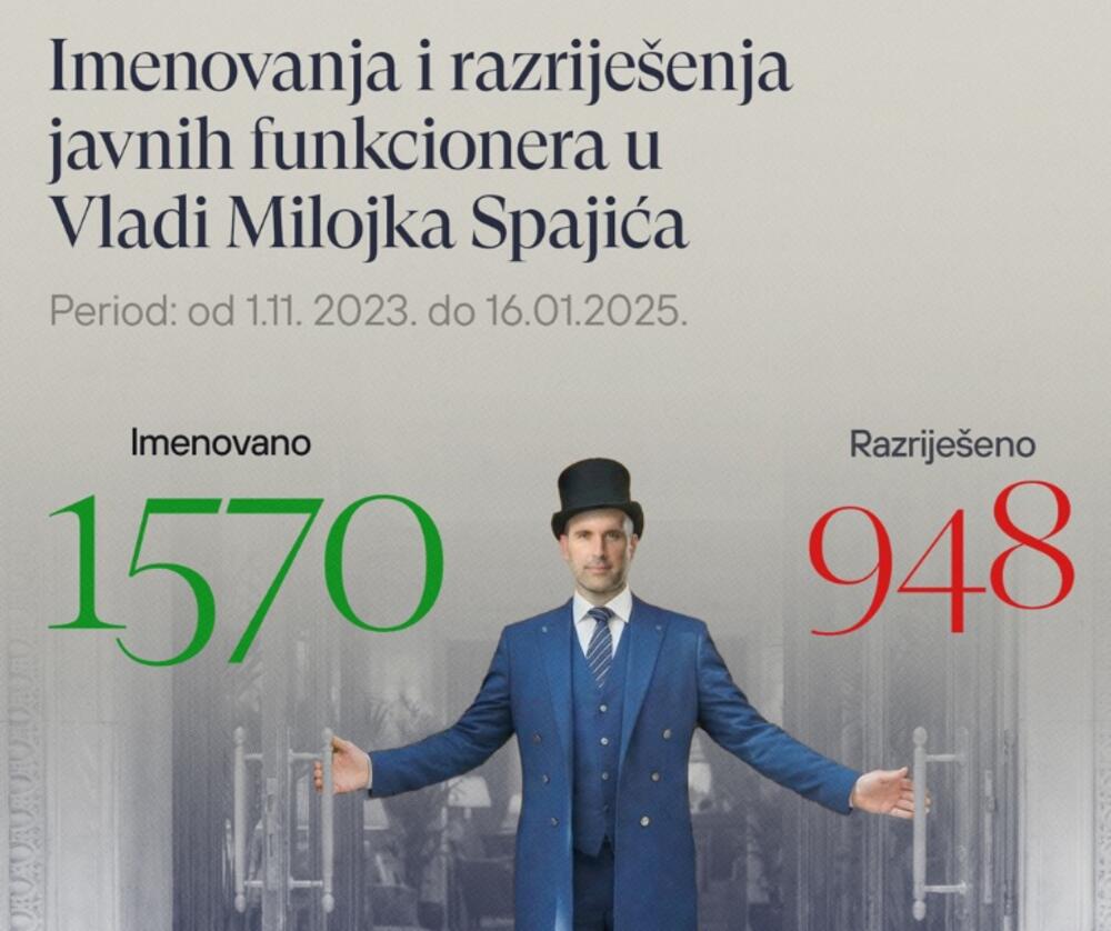 CGO: Spajićeva Vlada imenovala 1.570, razriješila 948 javnih...