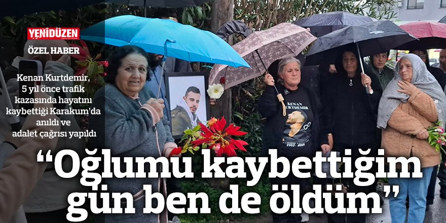 “Oğlumu kaybettiğim gün ben de öldüm” Girne’ye bağlı Karakum’da 17 Ocak 2021’de meydana gelen trafik çarpışmasında hayatını kaybeden Kenan Kurtdemir, 5. yıl dönümünde anıldı. Kazanın meydana geldiği yerde toplananlar, beş yıldır davanın sonuçlanmasını eleştirerek adalet çağrısı yaptı.