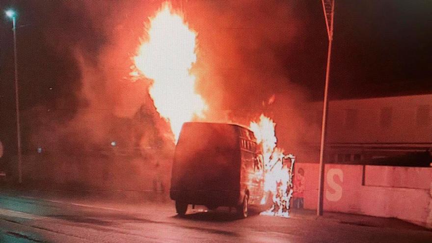 Arden una furgoneta en A Xunqueira y parte del palco de la fiesta de Moaña