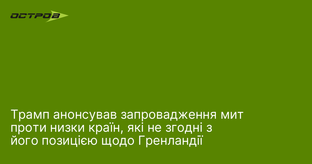 Президент США Дональд Трамп анонсував запровадження мит проти низки країн, які не згодні з його позицією щодо Гренландії, повідомляє "Європейська правда". За його словами, з 1 лютого 2026 року Данія, Норвегія, Швеція, Франція, Німеччина, Велика Британія, Нідерланди та Фінляндія будуть обкладатися...