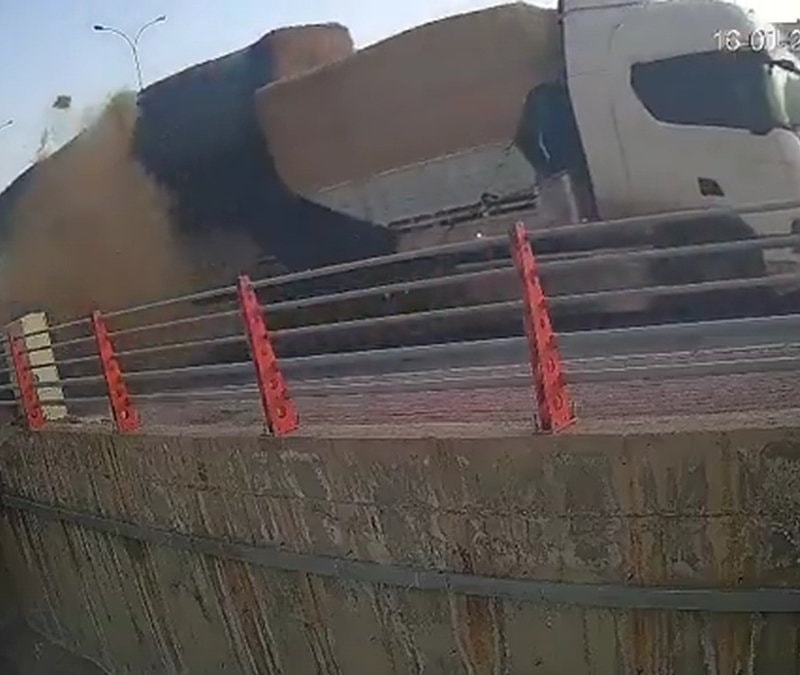 Haliliye ilçesinde seyir halindeki bir tırdan düşen saman balyası, kaldırımda yürüyen bir vatandaşın hemen yanına düştü. O anlar güvenlik kamerasına saniye saniye yansırken, olası bir facia kıl payı atlatıldı.