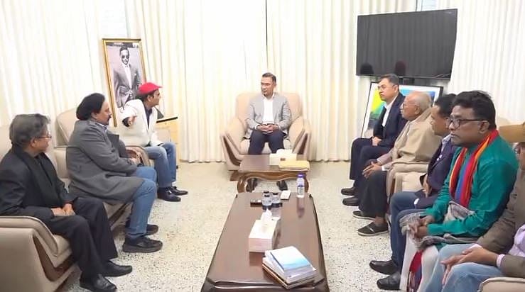 বিএনপির চেয়ারম্যান তারেক রহমানের সঙ্গে শিল্পকলা একাডেমির মহাপরিচালক রেজাউদ্দিন স্টালিনের নেতৃত্বে কবি-সাহিত্যিকদের একটি প্রতিনিধিদল সৌজন্য সাক্ষাৎ করেছে।