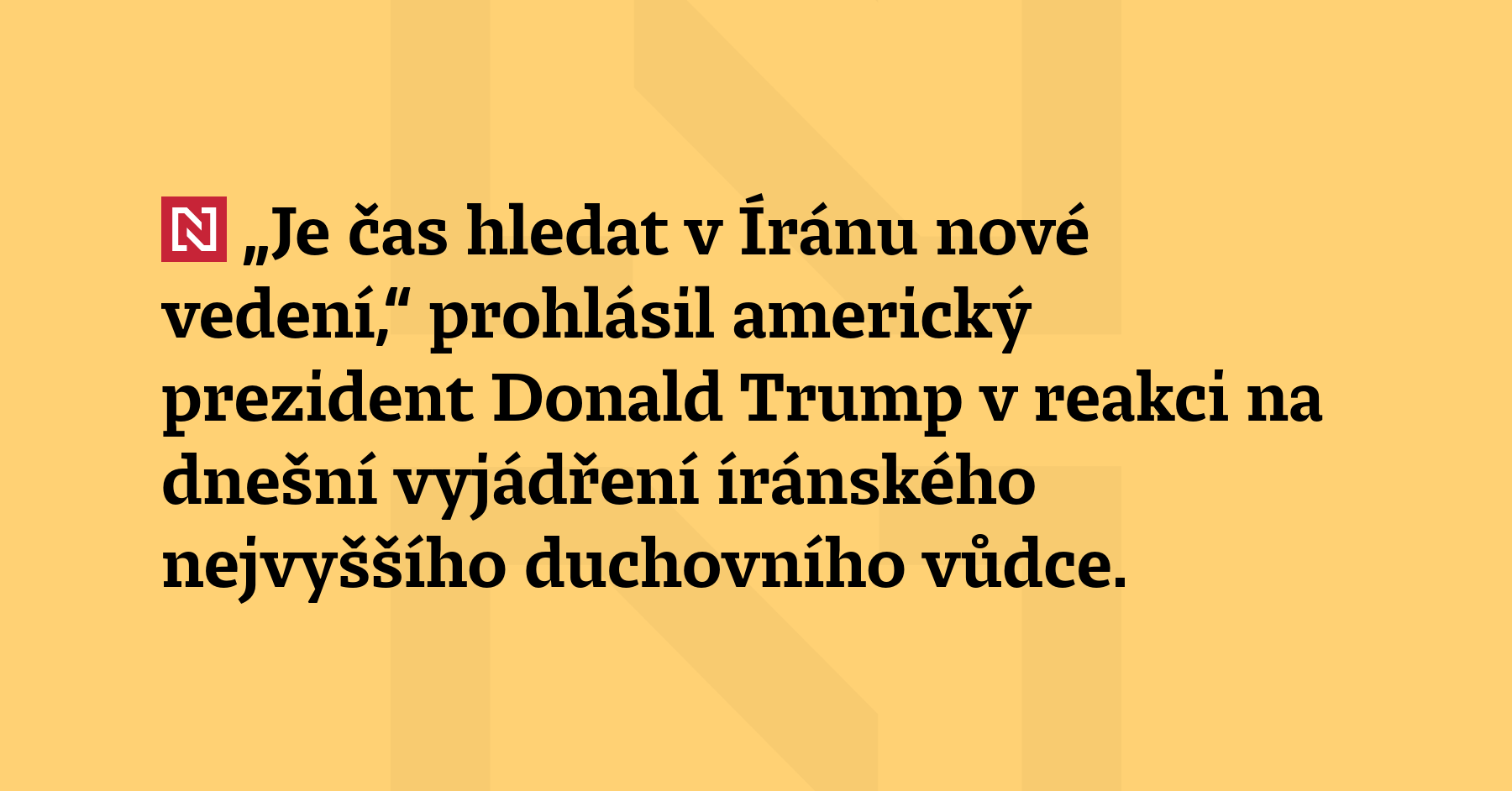 „Je čas hledat v Íránu nové vedení,“ prohlásil americký prezident Donald Trump v reakci na dnešní vyjádření íránského nejvyššího duchovního vůdce. Ajatolláh Alí Chameneí dnes totiž z úmrtí během nedávných protestů v Íránu obvinil USA. „Ten muž je nemocný, měl by řádně vést svou zemi a přestat zabíjet lidi,“ řekl Trump. (Politico)
