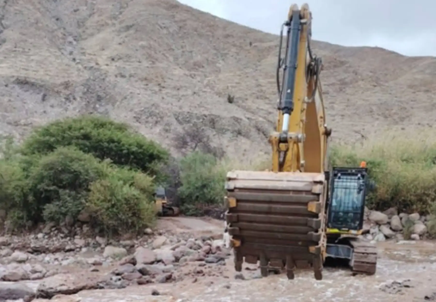 Continúan los trabajos de limpieza y rehabilitación con maquinaria pesada en la vía Ático-Caravelí, en la provincia arequipeña de Caravelí, donde en la víspera cayó un huaico que ocasionó daños a la infraestructura vial.