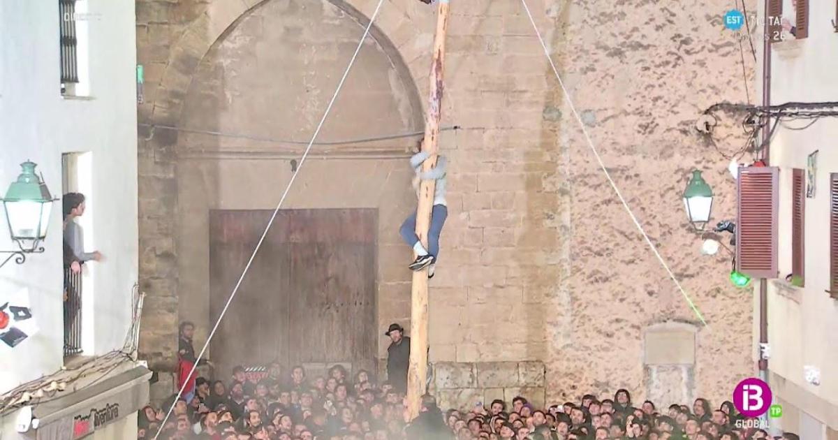 El joven Joan Rebassa, corona el Pi de Pollença